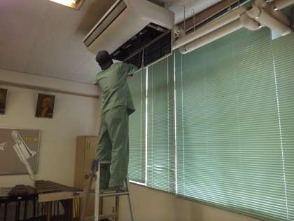 管理作業員さんが、空調機のフィルターをきれいに洗い、つけてくださっていました。