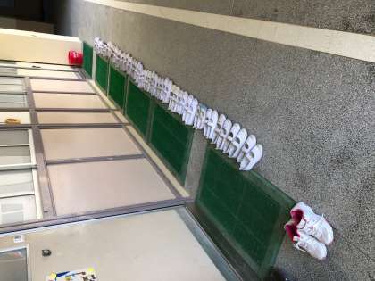 視力検査に来た3年生きちんと靴をそろえて並べています。