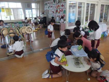 紙を丸めた中に糸の切れたさなぎを入れて育てたそうです。