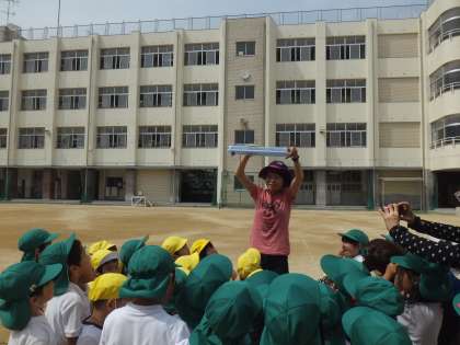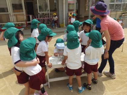 たんぽぽ組さんも一緒に、アゲハチョウを外ににがしてあげました。
