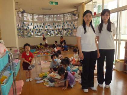 ○たんぽぽに入る前は落ち着きがなく、じっと座っていることができなかったが、丁寧な保育とたくさんのお友達とかかわる中で、しっかりと人の話が聞けるようになりました。在園児との交流で、さくら・まつ組さんにあこがれて、幼稚園に早く通いたいという気持ちが生まれました。