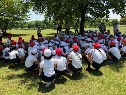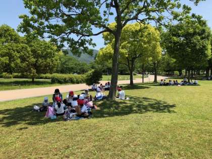 木陰で鳥のさえずりを聞きながら、ゆったりとした中、おうちの方に作っていただいたお弁当をおいしくいただいています。