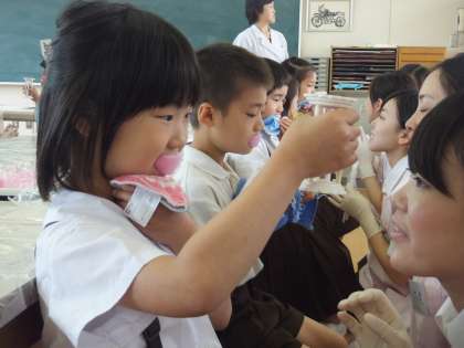 衛生講話とブラッシング指導が終わると、図工室へ移動します。