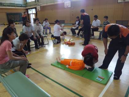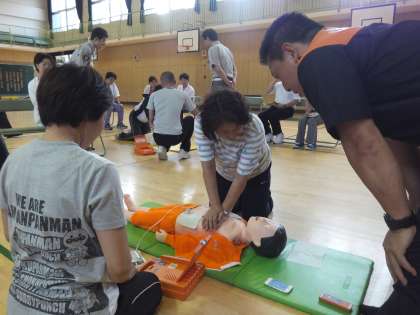 「胸骨圧迫」と「AEDの使い方」を体験しました。