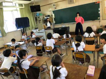 英語がご堪能な学びサポーターさんに来ていただき、英語活動を行いました。