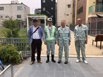 海老江西防災広場では、海老江西地区防災担当の皆さんが