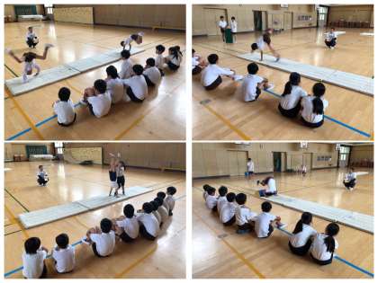 運動委員会は、6月4日の朝会でマット運動の手本を披露します。