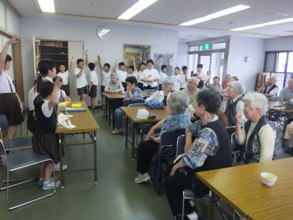 子ども達が考えたお笑いの劇に、手をたたき、喜んでくださった高齢者のみなさん。