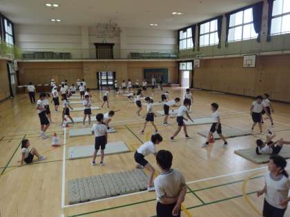 5・6年生がマット運動にチャレンジします。