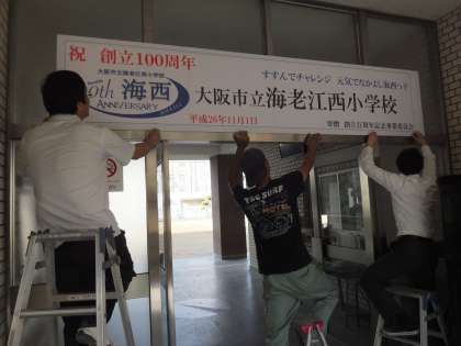 玄関に「祝 創立100周年」のパネルを掲示しました!