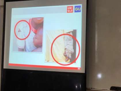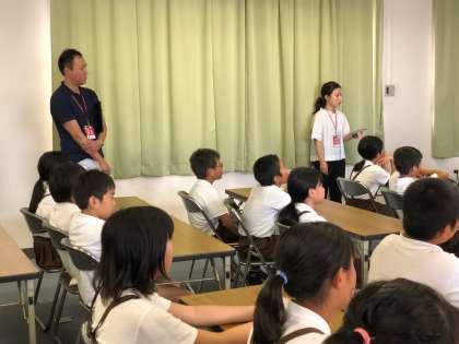 ユニクロの方に来ていただき、5,6年生が多目的室で"届けよう服のチカラ”プロジェクトに参加しました。