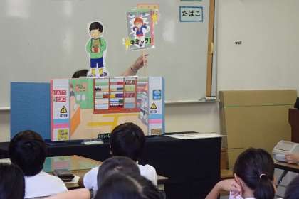 万引きをするとどうなるかを人形劇で学びました。