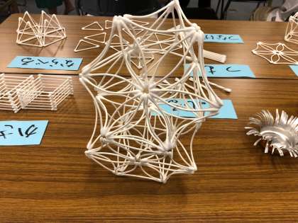 ペットボトルの立体構成、綿棒を使った立体工作を教えていただきました。