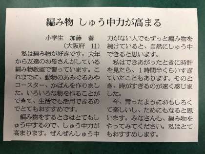 8月31日の朝日新聞の朝刊声の欄に、6年生,加藤 春さんの投書が掲載されました。
