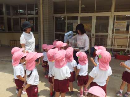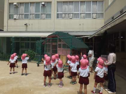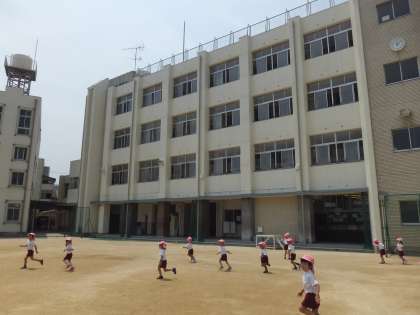 小学校の4階まで、羽を大きく広げて飛んでいきました。
