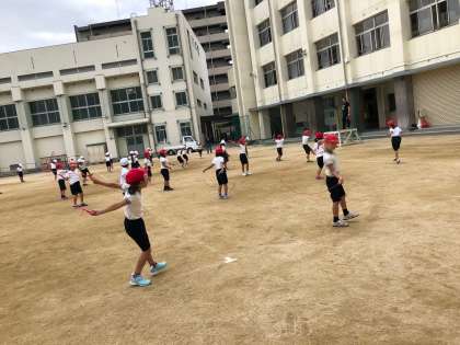 できた子ができない子にと教えあい、励ましあいながら練習しています。