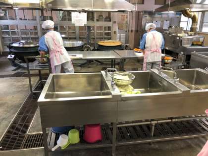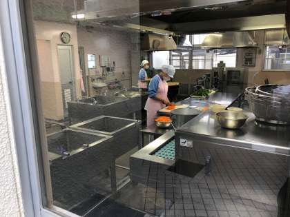 安心でおいしい給食のためにとても丁寧に調理してくださっています。