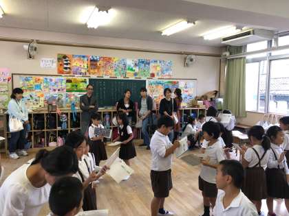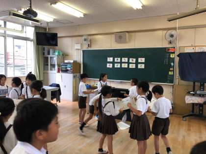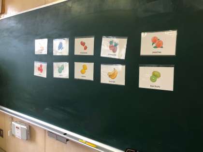 英語活動で果物を使って英語に親しもうの学習をしました。