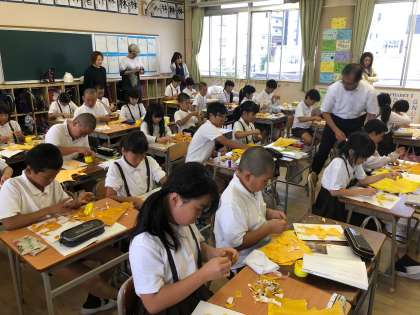 図工科で「ごんぎつね」をちぎり絵で作りました。