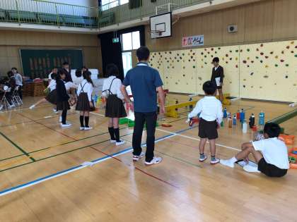 たてわり班を使った全校あげてのお楽しみ集会です。子ども達、やんやの大騒ぎです。