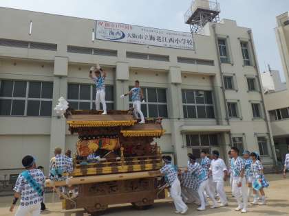 「だんじりの屋根で踊るんだ。」