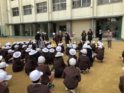 健康委員会児童が、給食の歴史や食べ物に対する感謝の気持ちをお話してくれました。