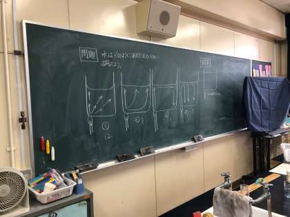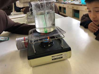 そして、水の中に色水を入れて、水があたたまりながらどのような動きを見せるかを学習しました。予想を立てて、実験方法を考えて、結果を出します。