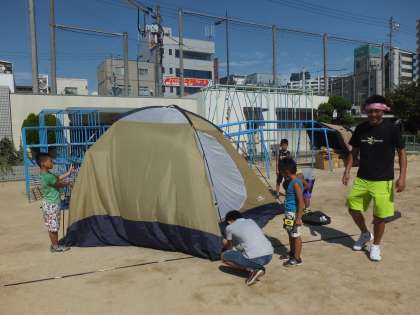 8月23日〜24日に、恒例の「海西子ども会校庭キャンプ」が行われました。