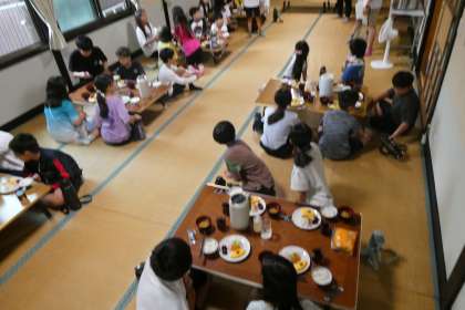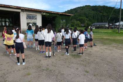 朝のつどいの後にラジオ体操をします。眠い目をこすりながら近くの広場まで移動です。