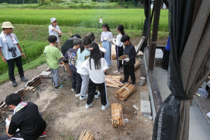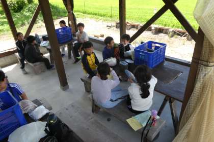 飯盒炊爨の準備から火おこしまで自分たちで計画して進めています。はじめて、マッチをする経験が初めてでなかなかうまくいきません。火が燃え上がるまでに時間がかかりました。