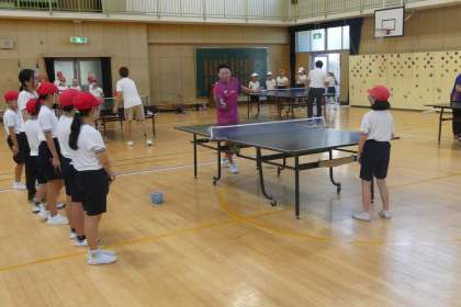 2004年アテネオリンピックの卓球日本代表として出場された、新井 周 選手をゲストティーチャーにお招きして、5,6年生対象に「夢・授業」が行われました。活動中の子どもたちはとても楽しそうで、なんと新井選手と63回もラリーが続いた子もいました。今回の活動を通して、子どもたちは卓球の楽しさを体験することができました。新井選手やスタッフの皆様、本当にありがとうございました。