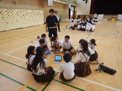 今週の金曜日に秋の遠足として訪れる大阪・関西万博会場でグループ活動を行う4・5・6年生が講堂に集まり、当日の行程の打ち合わせを行いました。そして、さすがは6年生。打ち合わせの後には、グループのみんなに分かりやすいようにと、当日の資料を作成していました。