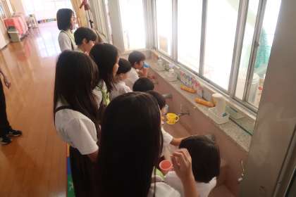 夏休みをはさんで、歌に合わせて順番に歯みがきのお手伝いができるかな?と、ちょっとだけ心配していましたが、みんなちゃんと覚えていてしっかりと活動ができました。