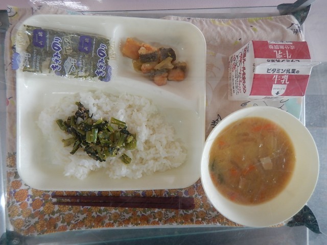 ・こまつなっ葉めし・さけの和風マリネソースかけ
