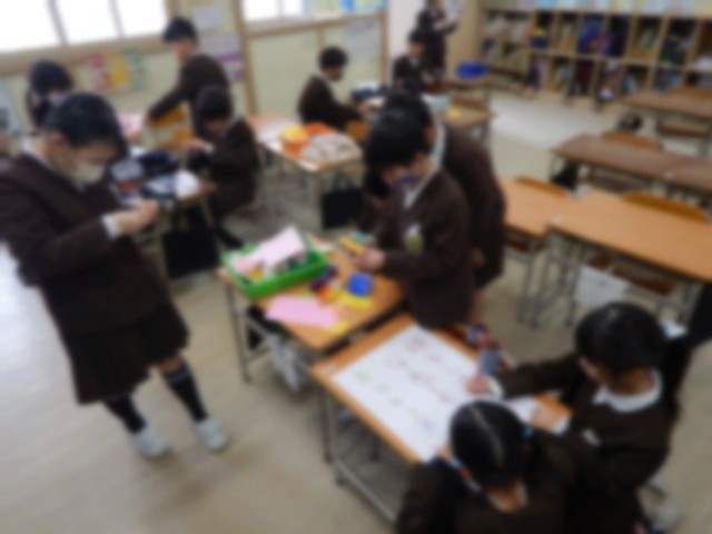 本日の児童集会では、1年生から5年生の子どもたちが、たてわり班に分かれて準備をしました。これまでお世話になった6年生のお兄さんお姉さんの卒業を祝うとともに、感謝の気持ちを伝えるために、子どもたちは協力して作業をしていました。こころがほっこり。笑顔がこぼれます。