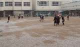 始業式に予定されていた「ふれあいたこあげ」。前日の雨で運動場の状態がよくなかっ...