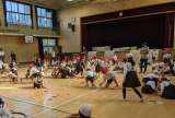 1年生と2年生がどんぐりゴマと松ぼっくりけん玉を作りました。道具の関係で、教室を...