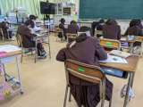 今日は3年生から6年生が、大阪市学力経年調査にいどんでいます。今日は国語と社会で...