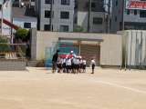 運動場での体育の時間、みんなでリズムに合わせて走ったりして体をほぐし、いろいろな...