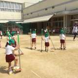 毎朝、1時間は、幼稚園の子ども達が小学校の運動場を使って、うんどうあそびをしてい...