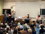 ビンゴ大会では、子どもたちが大盛りあがり。前に並べられたお気に入りの景品をうれし...