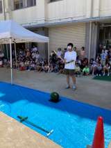 大歓声の中、スイカ割が始まりました。教員によるデモンストレーションのあと、子ども...