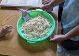 いよいよ最後、切っていきます。細く切るのが、なかなか難しく、細いのや太いのが混ざ...