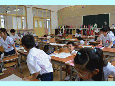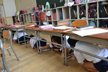 本校でも、事前指導のあと地震の想定で、放送をしっかり聞き取ることや、その場で身を守る処し方など訓練しました。