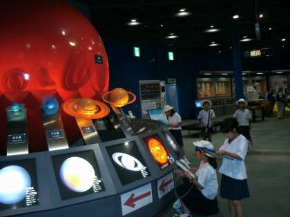 その後、4階の、天文や物理の展示を見ました。展示場では6つのポイントを回ってしおりに書き込みました。