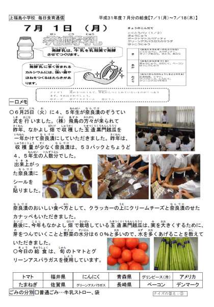 6月25日に4、5年生が奈良漬の贈呈式を行いました。