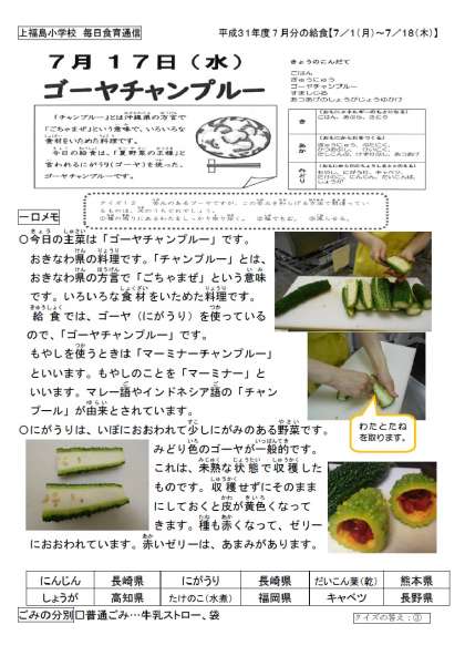 今日は沖縄県の郷土料理「ゴーヤチャンプルー」です