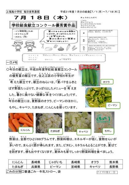 1学期の給食は今日で終わります。2学期の給食は8月27日からです