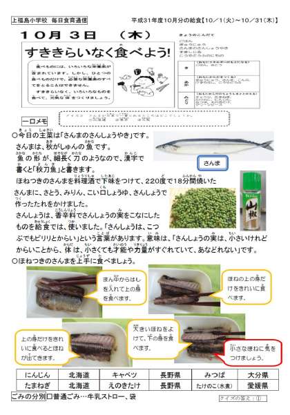 今日の主菜は、秋が旬のさんまのさんしょう焼きです