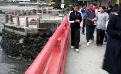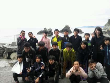 夫婦岩のほうにむけて、みんなで朝の散歩です。天気も良く、気持ちの良い海の景色です。